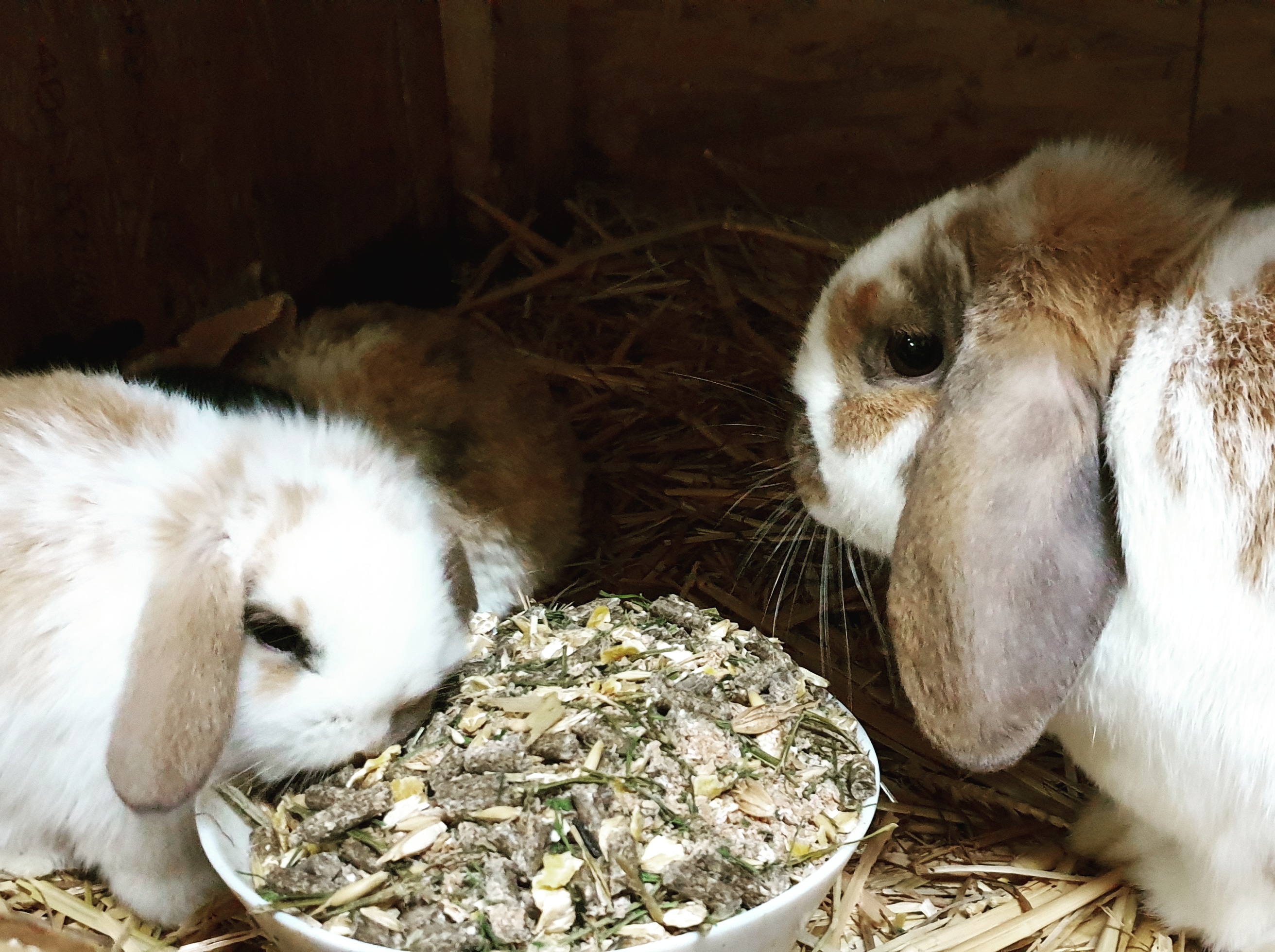 Die Ernährung unserer Kaninchen liegt uns sehr am Herzen. Ausgewogen und gesund soll sie sein, naturnah, aber doch an die Bedürfnisse unserer domestizierten Kaninchen angepasst. Hauptsächlich gibt es für Unsere Könige Wiese mit allen möglichen Kräutern und Gräsern solange es nur irgendwie möglich ist ( meist von März bis Oktober ). Außerdem gibt es immer ein hochwertiges Heu und grobes Stroh zu füttern. Ansonsten füttere ich eine eigens zusammengestellte und für unsere Tiere optimierte Mischung, die u.a. auch Grünhopper , Agrobs und Garvo enthält. Eine gute Struktur und die daraus resultierende Verträglichkeit und Bekömmlichkeit liegen mir sehr am Herzen.