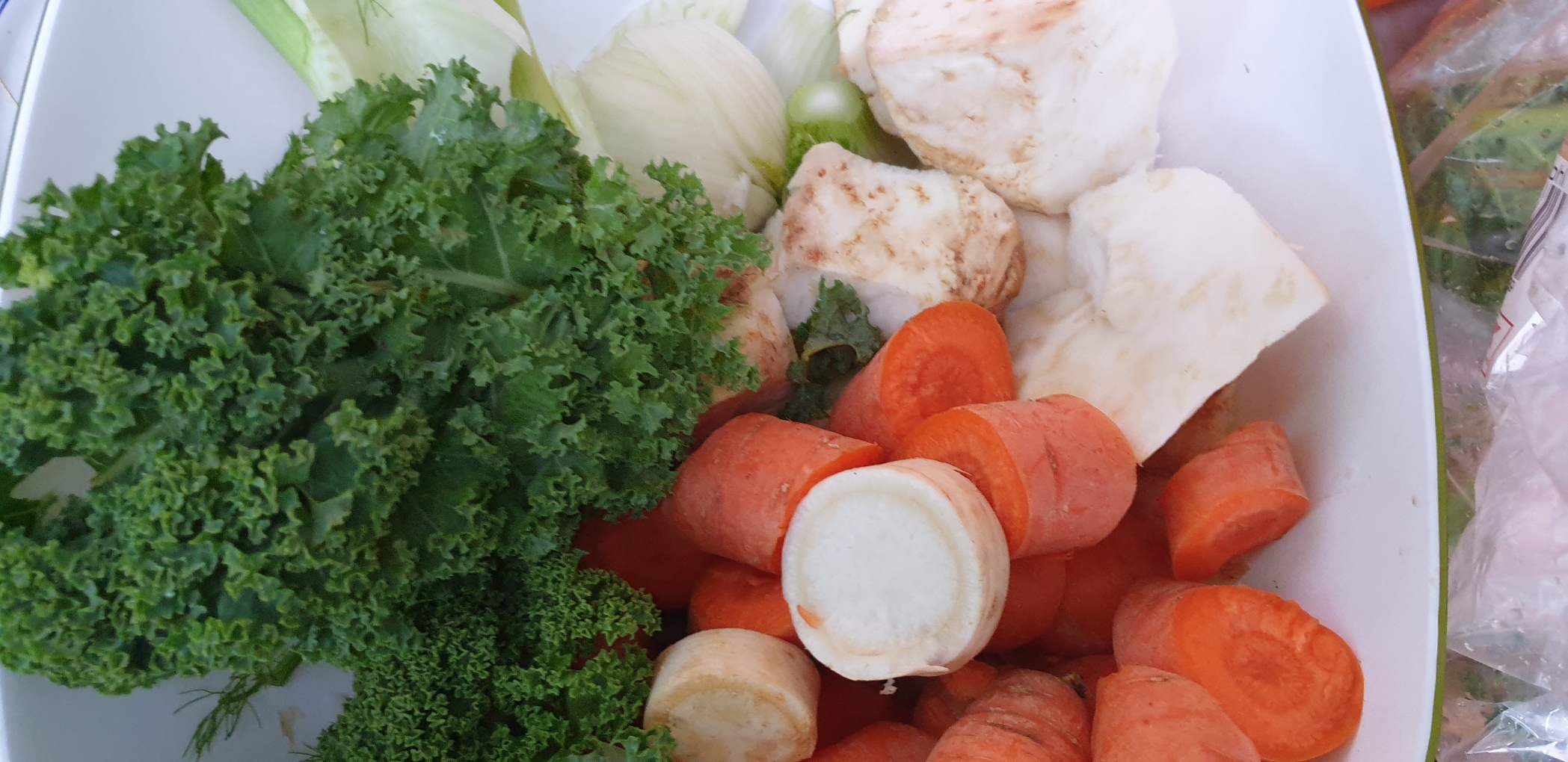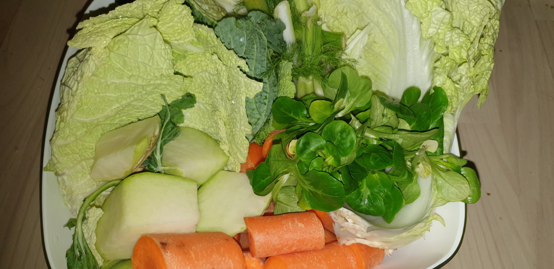 Und hier hab ich mal ein paar Beispiele, wie das Frischfutter im Winter aussehen kann: